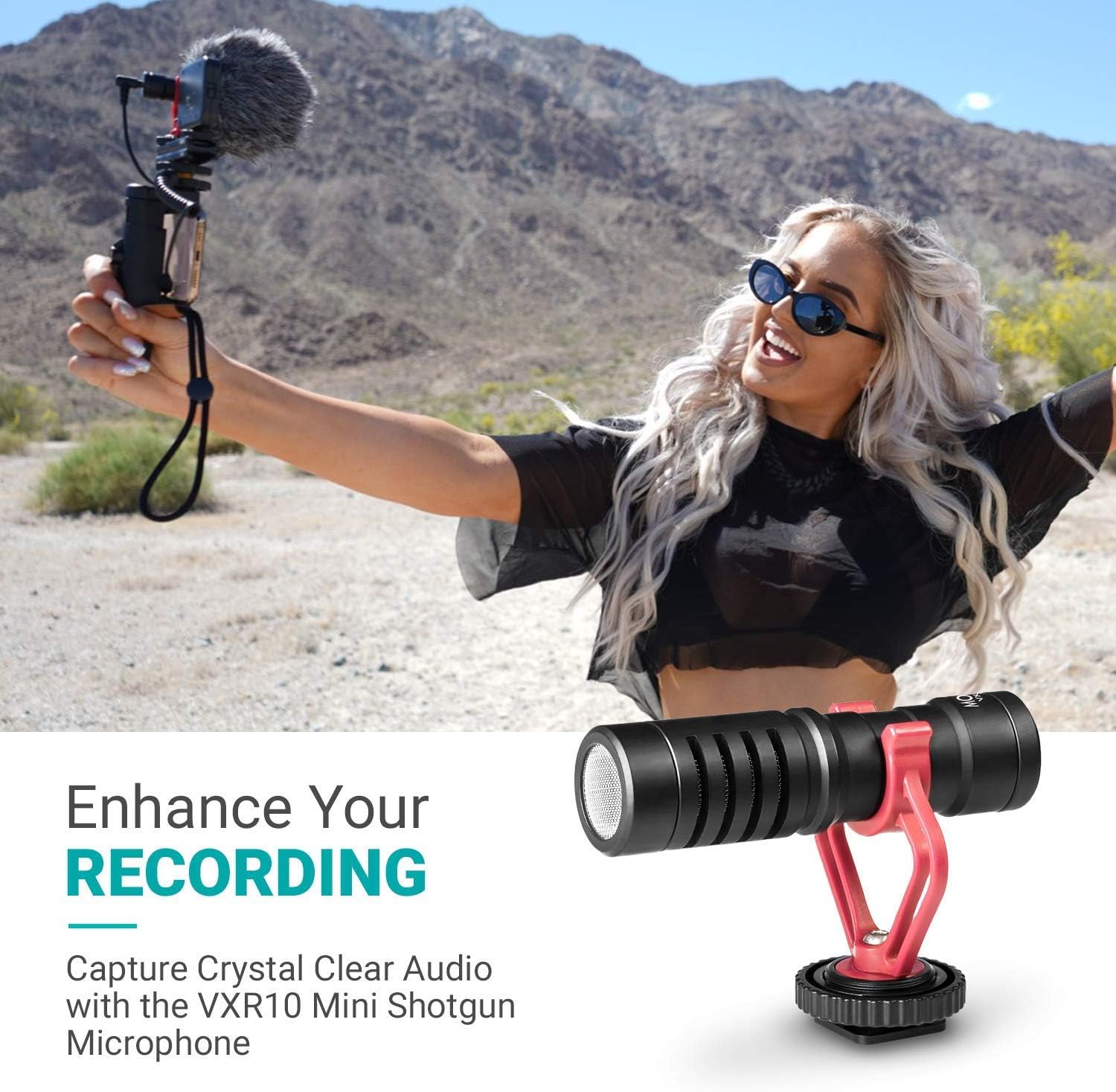 - Mejora tu audio: micrófono cardioide de alta calidad que permite un audio nítido mientras reduce el ruido de fondo, especialmente el viento. Incluye soporte de choque, parabrisas peludo y cables TRS y TRRS.